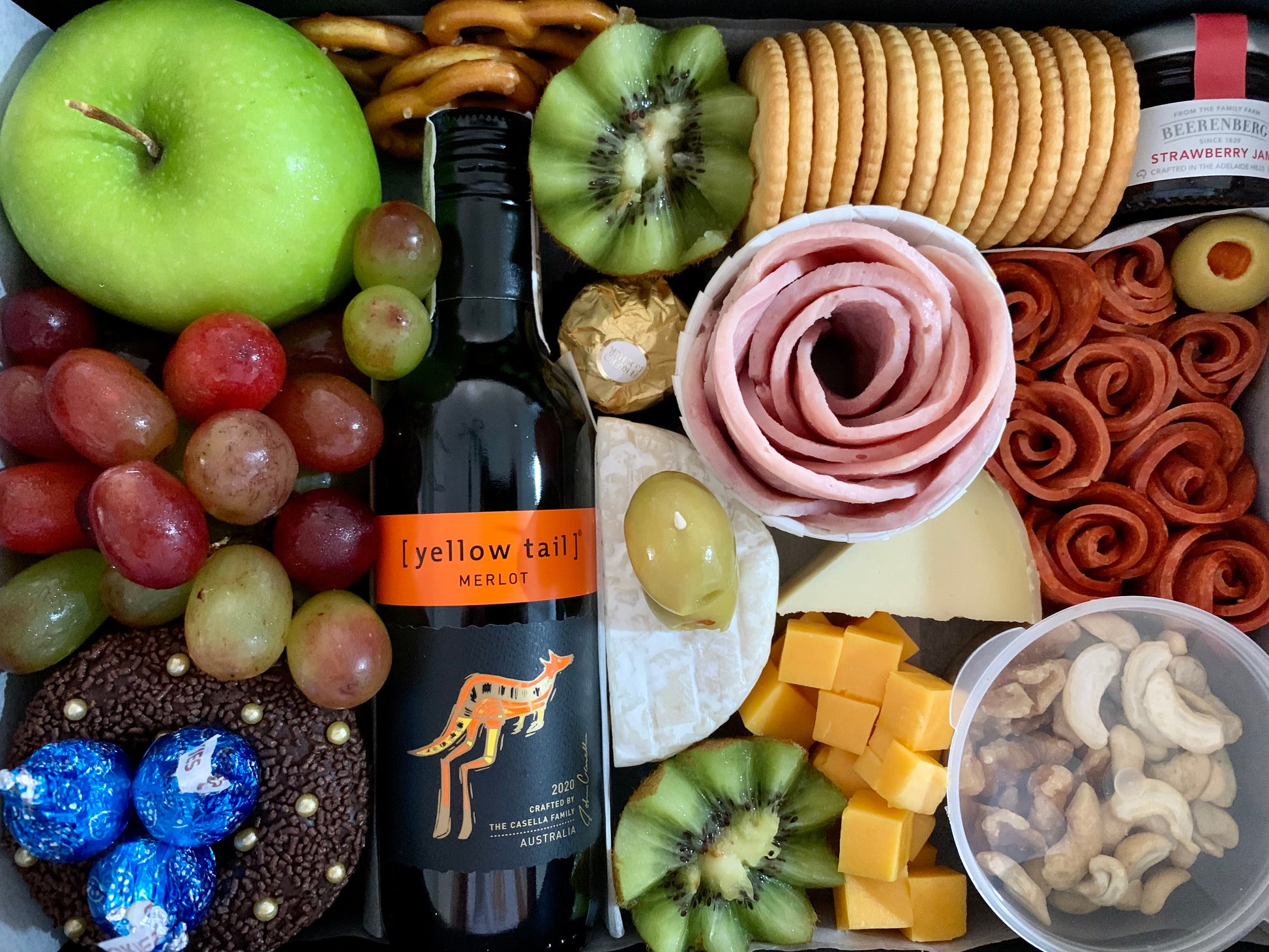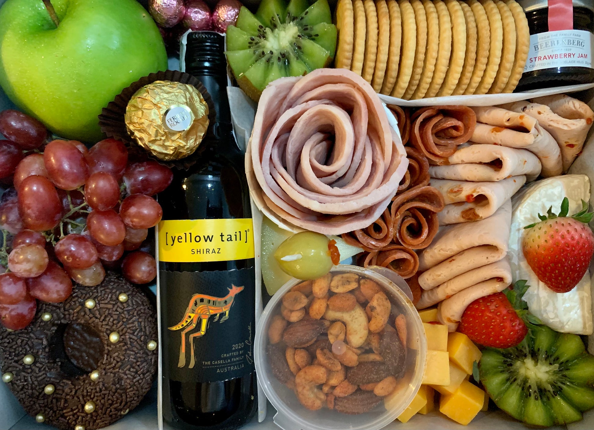 Treat yourself and your loved ones with the Medium Graze Box from Goodness Graze! Enjoy grazing with your favorite cheeses, cold cuts, chocolates, fruits, and nuts. It comes with a 187 ml. wine or your preferred drink.